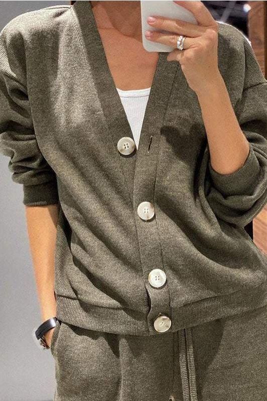 The Aspen Knit Set brings together effortless comfort and modern style. Designed for everyday wear, this two-piece ensemble includes a button-up knit cardigan and wide-leg drawstring pants, making it the perfect choice for lounging, casual outings, or travel-ready looks.